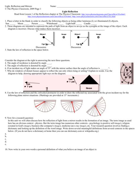 Online PDF LIGHT REFLECTION AND MIRRORS PHYSICS CLASSROOM ANSWERS mobipocket BookBoon